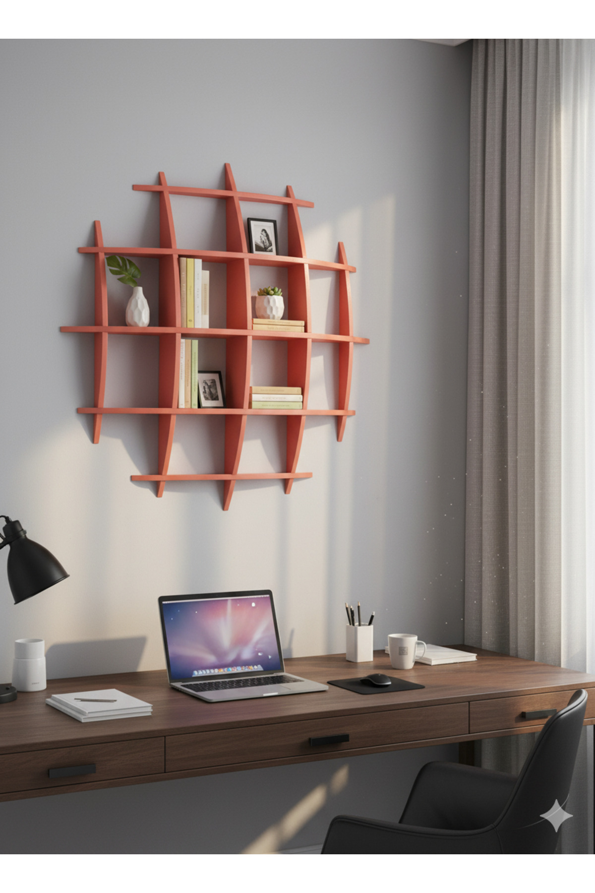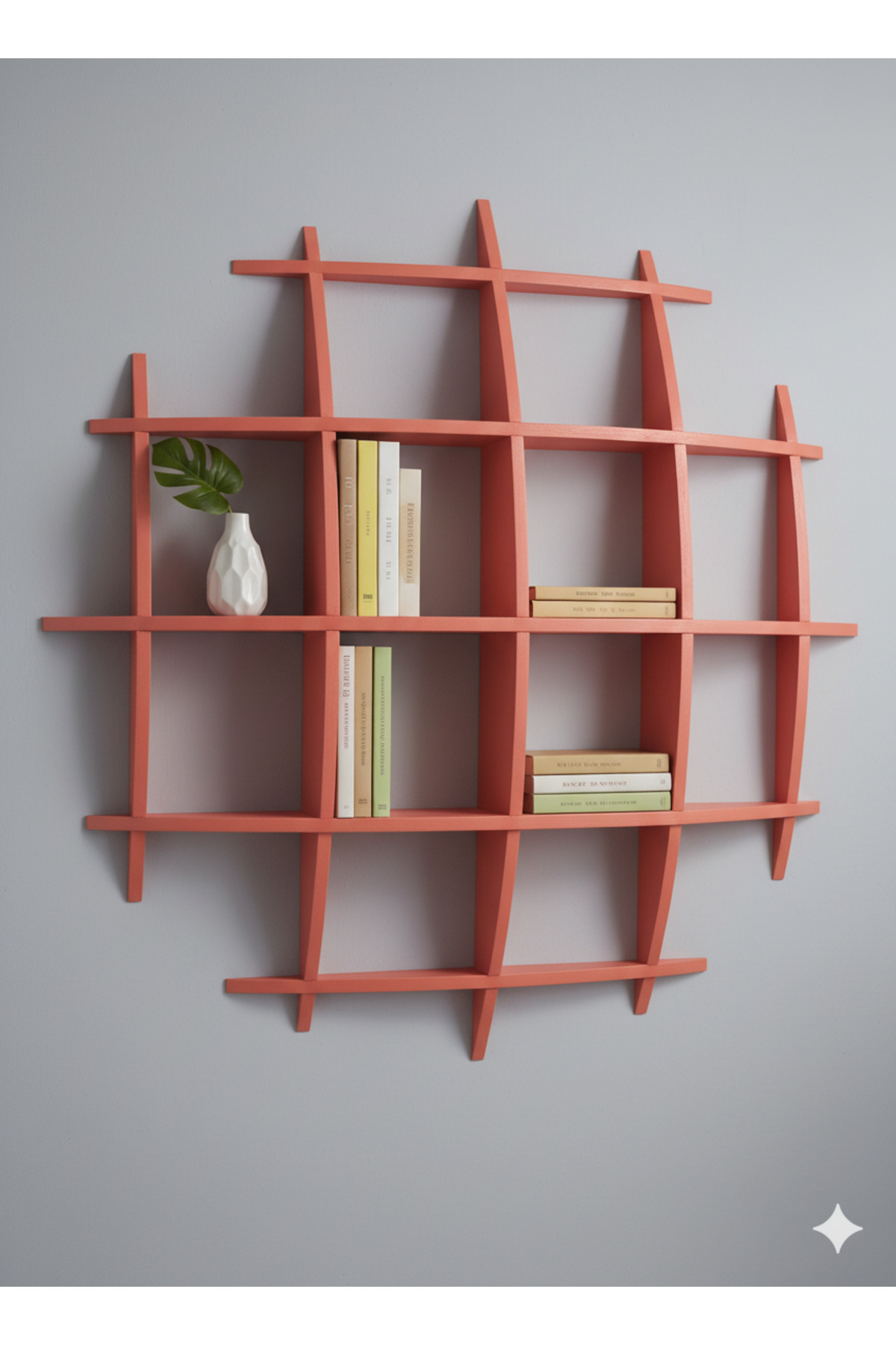 Düz ve sıradan rafların ötesine geçin! Geometrik düzeni, organik ve akıcı kavislerle birleştiren bu eşsiz ızgara duvar rafı ile tanışın. Sadece bir kitaplık değil, aynı zamanda duvarınızı bir tuval gibi kullanarak kişisel zevkinizi yansıtan modern bir sanat enstalasyonu olan bu raf, evinizin atmosferini anında zenginleştirecek.