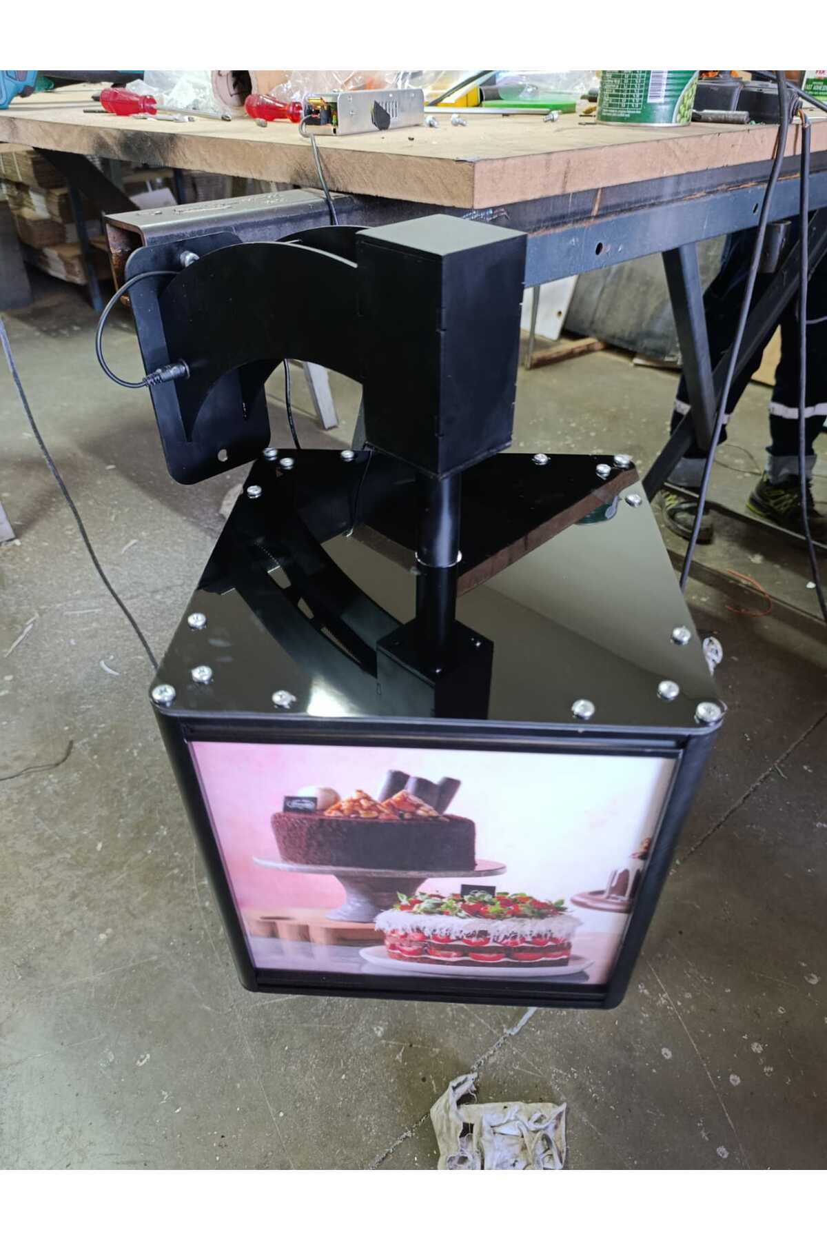 Sessiz ve Verimli Motor: Üst kısmında bulunan yüksek kaliteli döner motor, minimum ses seviyesi ile çalışarak çevreyi rahatsız etmeden tabelanızın kesintisiz dönmesini sağlar. 220V standart priz ile çalışır.